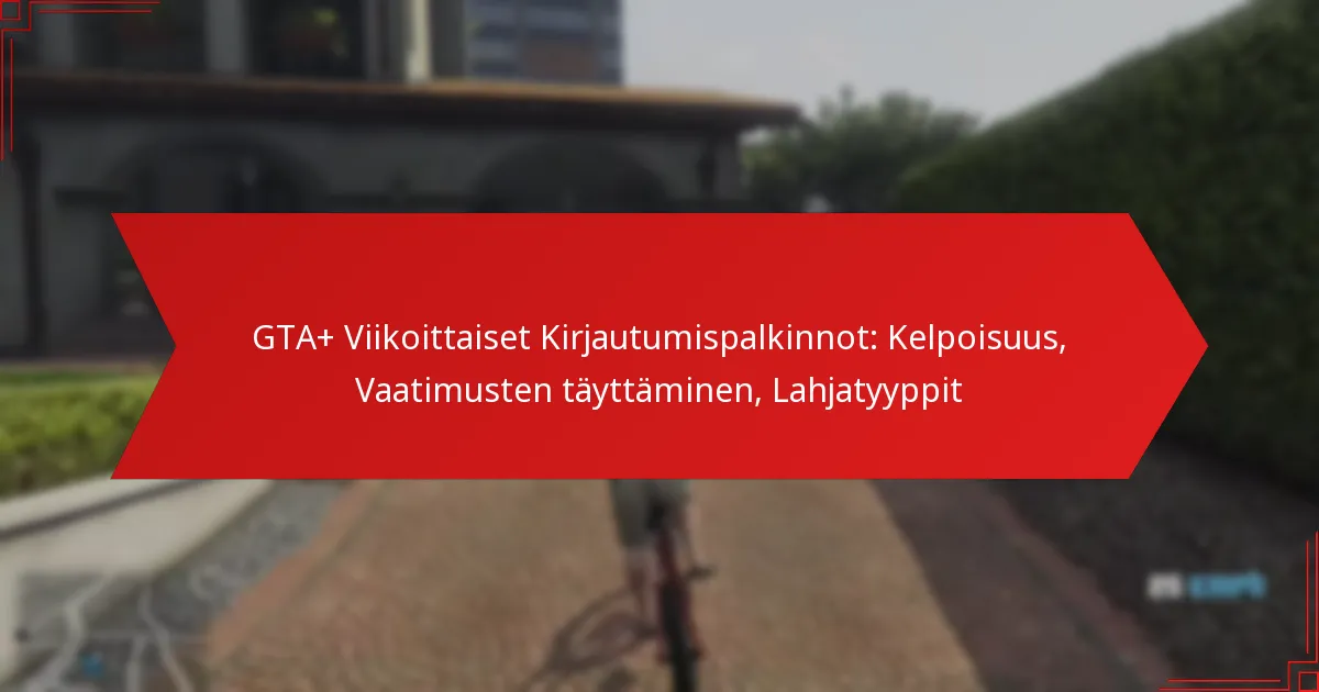 GTA+ Viikoittaiset Tapahtumapalkinnot tarjoavat eksklusiivisia etuja pelaajille, jotka osallistuvat määrättyihin viikoittaisiin tapahtumiin Grand Theft Auto Online -pelissä. Näiden palkintojen lunastamiseksi…